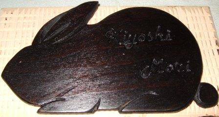 写真2・・・学校時代のテーブル名札。これも漆、摺けちゃった(ハハハ。